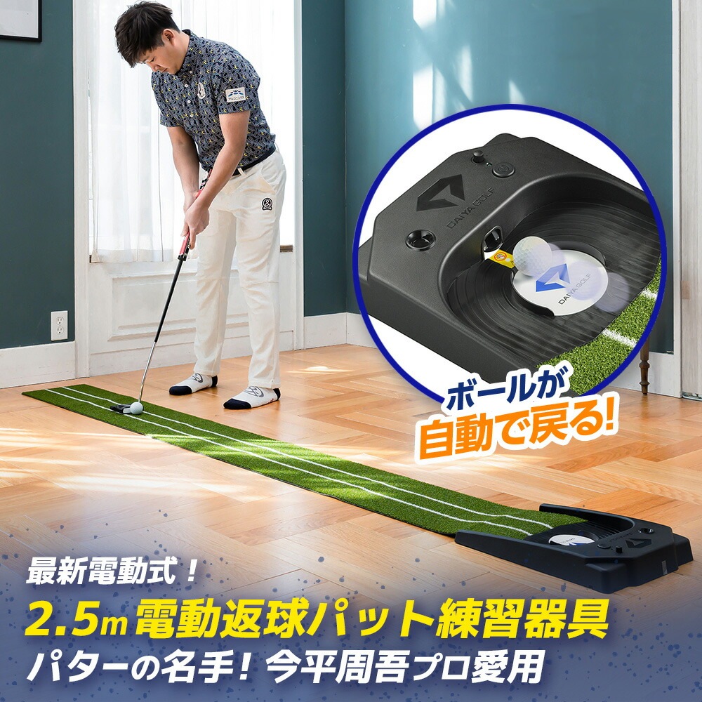 また、「返球距離調節ボリューム」を搭載することで、本品の最大長約2.5mに合わせた自動返球だけでなく、1m程度のショートパットのアドレス位置への返球調整も可能。