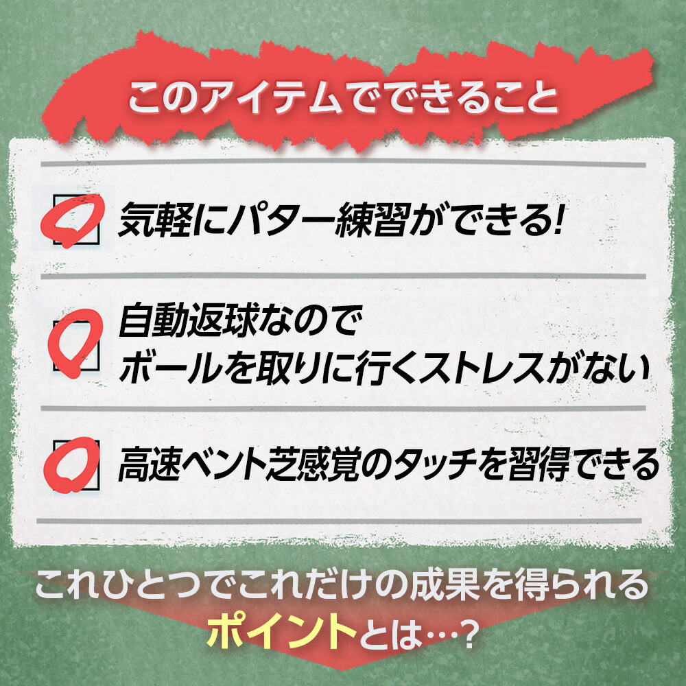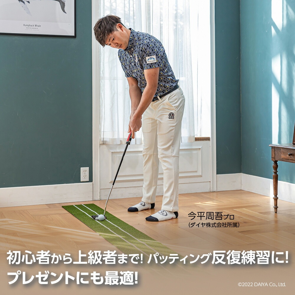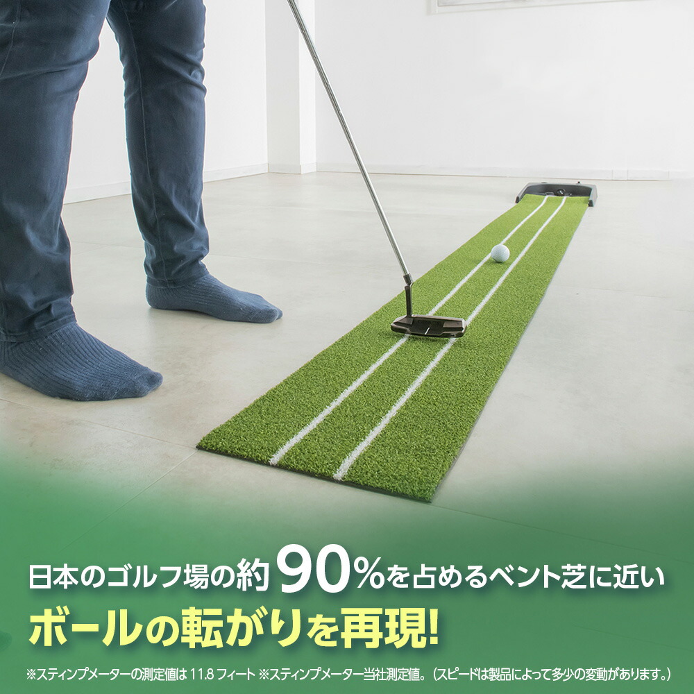 本品の最大長に合わせた約2.5mのパット練習だけでなく、実際のコースで緊張する1m程度のショートパットも繰り返し練習できます。