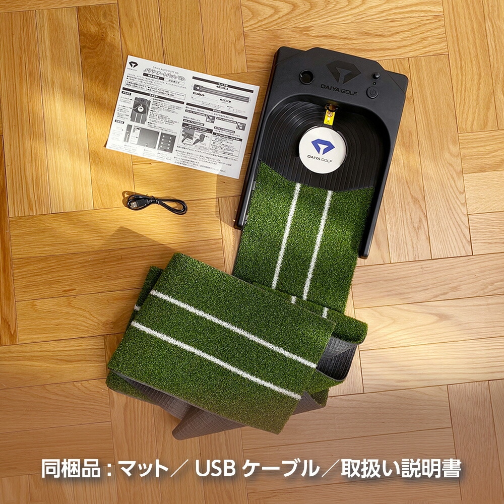 打ったボールがアドレス位置に自動で戻る「静音オートリターン」機能を採用した電動式パターマット。約1.8倍高密度な人工芝※1が実現する高速ベントグリーンの転がりを、ボール一つで繰り返し習得できる練習器です。