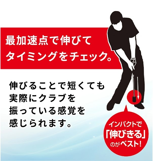 『ダイヤスイング531』は、スイングした時の加速によって、シャフトが伸縮する作りになっているので、正しいリリースポイントを、シャフトが伸びる感触で覚えられます。