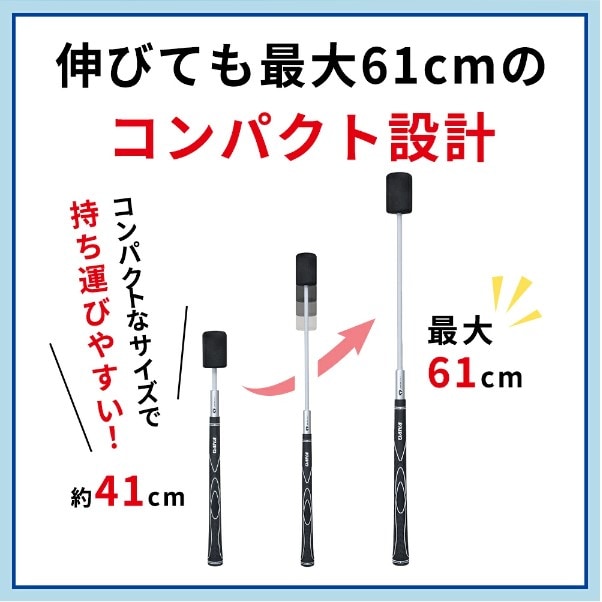 室内でも実践的なスイングができる、最短約41cmの伸びる練習器。