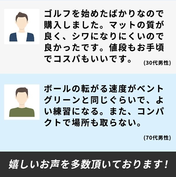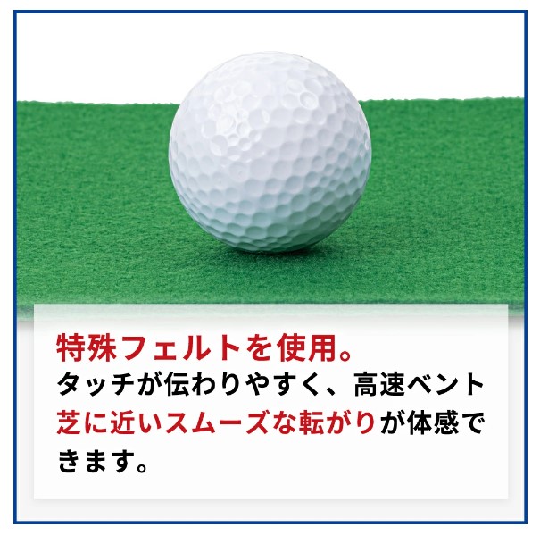 タッチが素直に伝わる高速ベント芝に近いスムーズな転がりが体感できる特殊フェルトを使用しております。