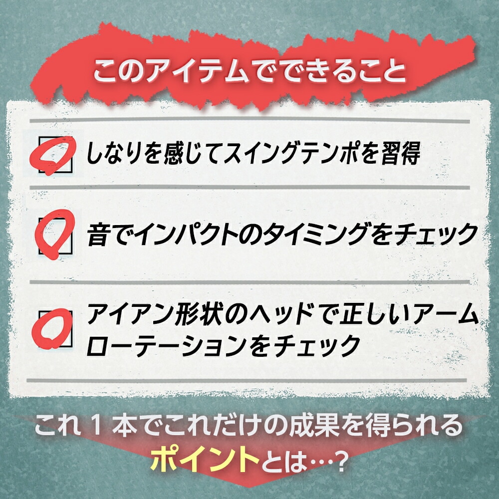 また、インパクトゾーンで音が鳴るようにスイングすることでスイングリズムを整え、正しいスイングを体感できます。