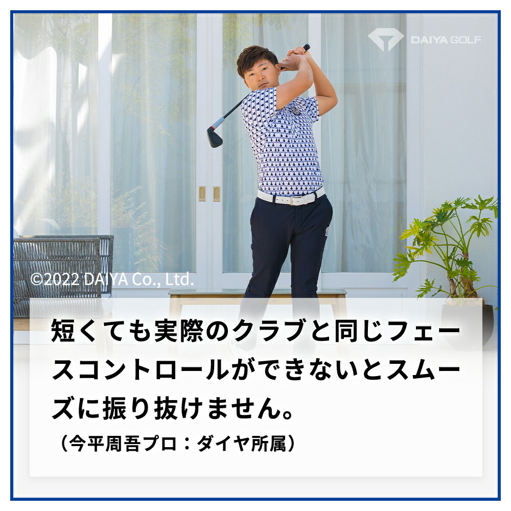 ヘッド部分は7番アイアンのような形状で、スタンスを構えた時のグリップとフェイスの向きを意識しながら、アームローテーションの確認が可能です。